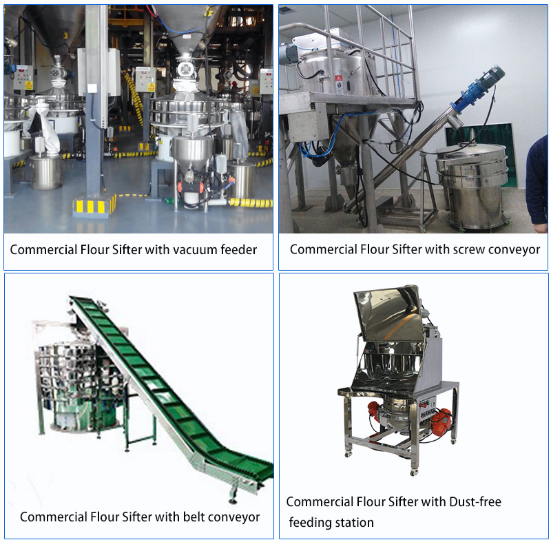 Commercial flour sifter is made of SS304 or 316L stainless steel, and the machine undergoes a strict polishing process to avoid any chance of cross-contamination between batches, meeting the stringent engineering and safety standards required by the food industry.
