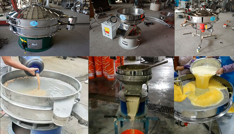 The circular vibrating screen is used to filter common liquids, powders, or small particles within 500 mesh, such as soy milk and juice.